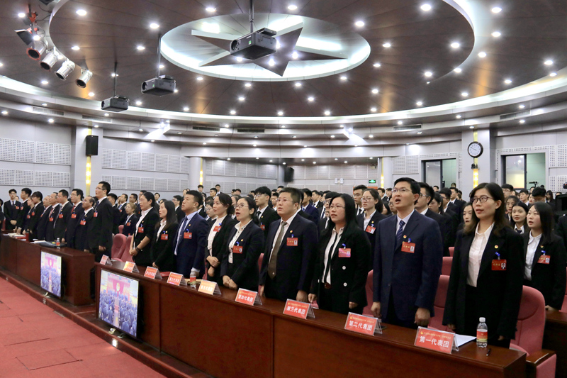 大会在庄严的国歌声中拉开帷幕。高建广代表学校对大会的召开表示祝贺,对全校团员青年致以亲切的问候,对长期以来关心支持学校共青团工作的团省、市委领导和兄弟单位表示诚挚的感谢。高建广充分肯定了我校各级团组织在上级团组织和校党委的正确领导下,高举中国特色社会主义伟大旗帜,紧扣立德树人根本任务,把握当代青年特点和青年工作规律,坚持问题导向,解放思想,探求对策,在强化思想引领、深化创新实践、丰富校园文化、夯实组织基础等工作中,呈现出蓬勃向上的态势,为学校事业发展和人才培养作出的积极贡献。对全校各级团组织和广大团员青年提出三点希望和要求:一要始终坚持党的领导,时刻牢记使命担当。各级团组织和广大团员青年要坚持干在实处,走在前列,把团的工作当作增长才干、成就事业的平台,在担当中历练,在尽责中成长,让青春在新时代的奋斗中闪光。二要始终与时代同步,扎实掌握过硬本领。广大团员青年要切实把学习作为成长进步的阶梯,要始终保持旺盛的学习热情和求知欲望,培养科学的思维方法,紧跟时代步伐,不断实现超越,淬炼坚韧不拔的意志品质。三要始终与青年同行,精确瞄准目标方向。学校各级团组织和团干部要弘扬科大精神,传承科大优良传统,倾听青年心声,凝聚青年力量,突出政治性先进性群众性,着力构建具有鲜明科大特色的共青团工作新格局。