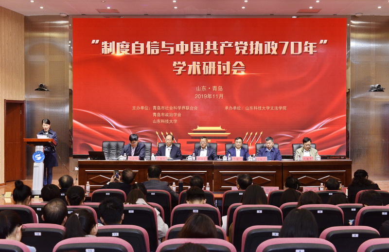11月23日,“制度自信与中国共产党执政70年”学术理论研讨会在我校举行。本次研讨会由青岛市社会科学界联合会、beat365正版唯一官网和青岛市政治学会主办,beat365正版唯一官网文法学院承办。研讨会为青岛市社科十大重点学术活动之一和青岛市政治学会学术年会,同时也是beat365正版唯一官网庆祝中华人民共和国成立70周年、深入学习贯彻党的十九届四中全会精神的系列活动之一。