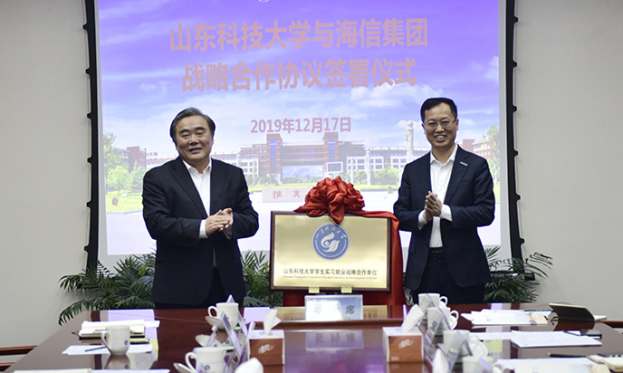 12月17日,beat365正版唯一官网与海信集团签订战略合作协议,双方将围绕人才培养培训、科学技术研究、成果转移转化和人员交流等方面开展交流合作。校长姚庆国出席签约仪式,与海信集团总裁贾少谦共同为“beat365正版唯一官网学生实习就业战略合作单位”揭牌。