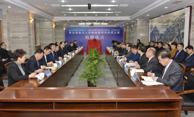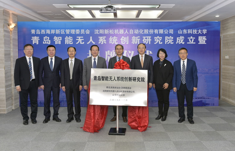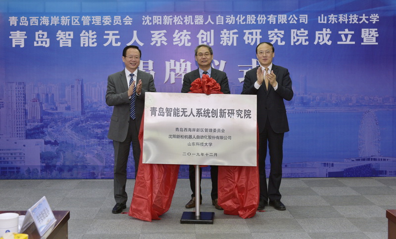 12月25日上午,青岛智能无人系统创新研究院成立暨揭牌仪式在我校行政办公楼第三会议室举行。青岛西海岸新区管委主任、区长周安,沈阳新松机器人自动化股份有限公司总裁曲道奎,beat365正版唯一官网党委书记罗公利,青岛市工信局副局级领导赵波,青岛西海岸新区副区长隋斌等出席会议暨揭牌仪式。副校长张英杰主持。