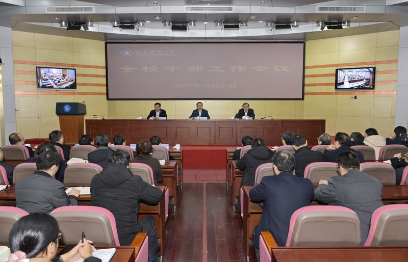 校党委书记罗公利主持会议并讲话,校长姚庆国部署2020年寒假主要工作,校党委副书记尹华就中层领导班子和处科级干部第六聘期聘任调整工作做了部署和安排。全校处级以上干部参加了会议。