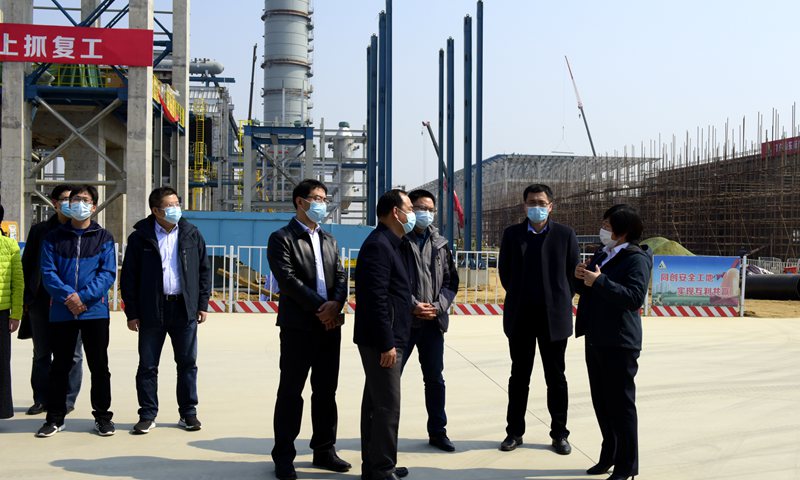 疫情当前,3月17日,省派青岛市beat365正版唯一官网“四进”工作组奔赴青岛金能新材料有限公司高性能聚丙烯项目建设现场,深入一线全面了解项目在疫情防控、员工返岗复工管理等有关情况,认真听取复工复产中面临的实际困难和有关建议。