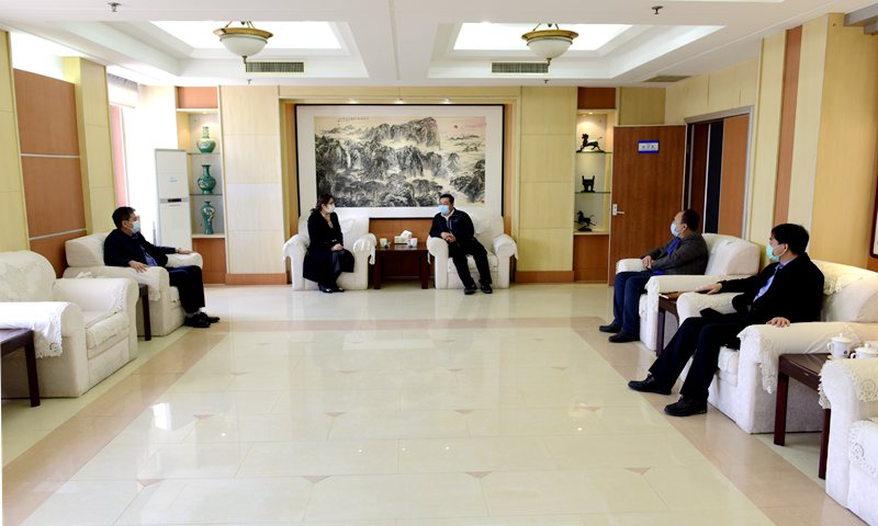 3月30日,青岛市市南区委常委、宣传部部长付荣云一行向我校捐赠抗疫防护用品并座谈交流。beat365正版唯一官网党委副书记尹华接待付荣云一行。