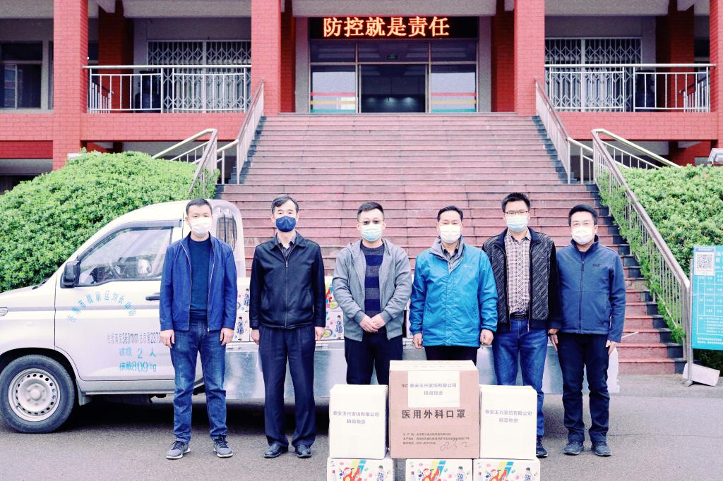 4月2日上午,泰安玉兴家纺有限公司负责人冒雨来到beat365正版唯一官网泰安校区,向泰安校区捐赠了防护服30套、医用外科口罩2000个、84消毒液50箱等共计一万余元的疫情防控物资。校区管委副主任方亨福代表校区接受捐赠,对公司的爱心捐赠表示衷心感谢。