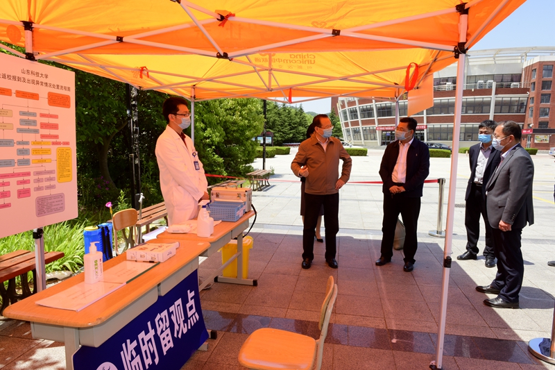 在实地检查中,罗公利不时向工作人员询问各项工作开展情况,对教学和生活区域的各项设施准备情况进行检查,详细了解学生返校后上课、住宿、用餐、收发快递等相关情况。在图书馆,他详细听取了学生返校后如何进入图书馆学习的汇报,对存在的相关问题提出进一步完善落实的要求;在教学楼及多处临时留观点,听取了相关部门对留观点等工作情况的汇报,就进一步做好做细疫情防控工作提出要求。