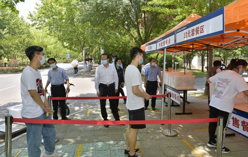 6月8日,校党委书记、学校疫情防控工作领导小组组长罗公利先后到三个学生餐厅、外卖售餐点、校园超市等场所,检查指导学生餐厅和超市的服务保障工作和疫情防控情况。校党委副书记尹华,副校长李玉霞陪同。