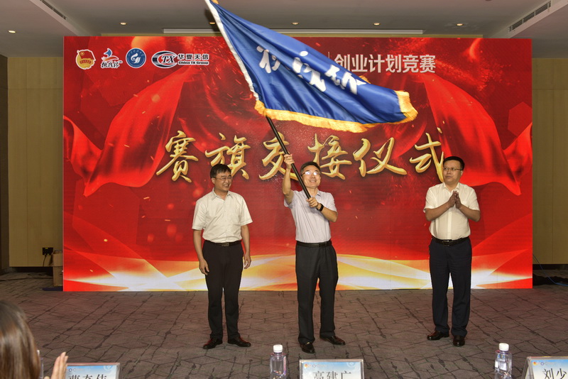 闭幕式上,揭晓了第十二届“挑战杯”华夏天信·山东省大学生创业计划竞赛决赛的获奖单位和作品,高建广向李汝剑颁发“鼎力”奖杯,刘少华、高建广与下一届“挑战杯”承办高校为山东大学进行赛旗交接。