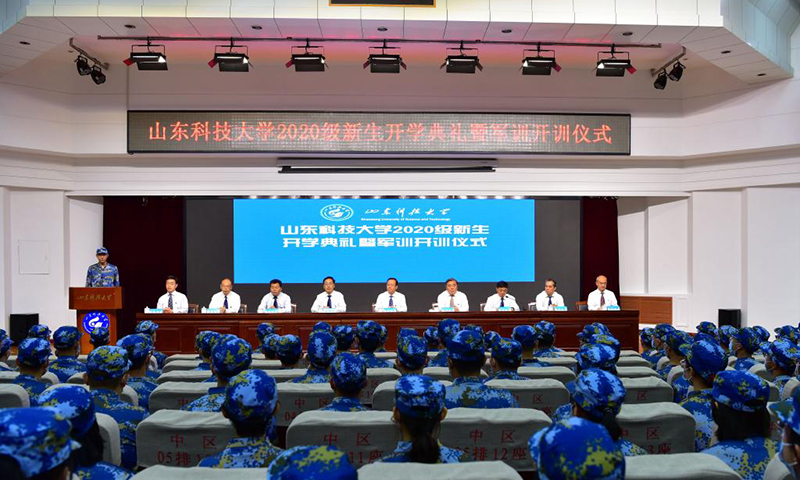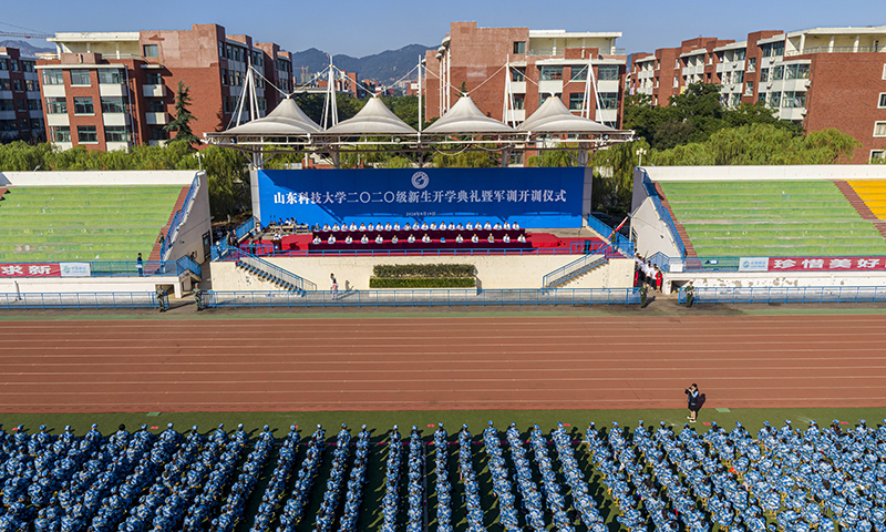 秋高气爽,丹桂飘香;鲲鹏展翅,天地翱翔。9月18日、19日,在惠风和畅的金秋季节,在雄壮的国歌声、在清越的校歌旋律中,beat365正版唯一官网分别在青岛校区、泰安校区、济南校区举行2020级新生开学典礼暨军训开训仪式。7900余名本科生和2500余名研究生新生精神抖擞,汇聚一堂,共上第一课,怀揣成才心,逐梦新征程。