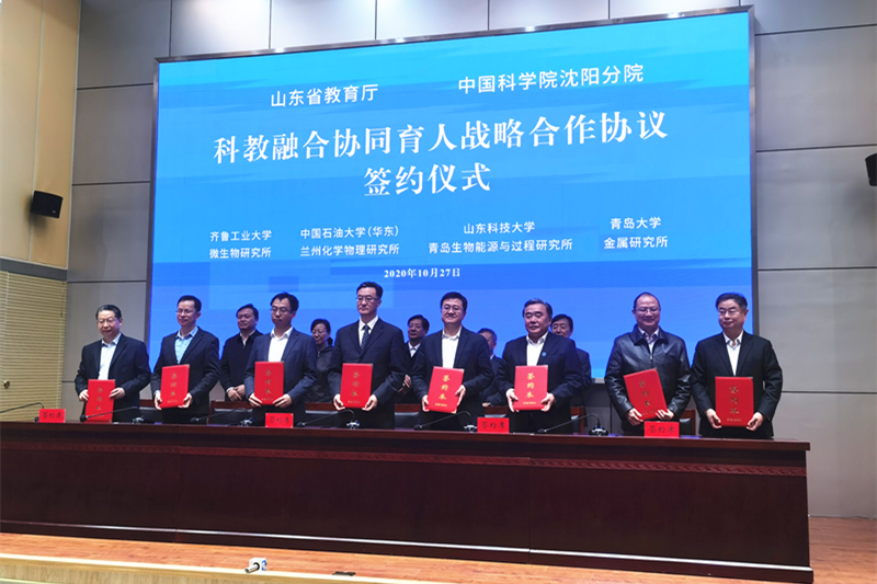 10月27日,山东省教育厅与中国科学院科教融合协同育人战略合作协议签约仪式在济南举行。校长姚庆国出席签约仪式并代表学校与中国科学院沈阳自动化研究所、青岛生物能源与过程研究所、兰州化学物理研究所签署战略合作协议。