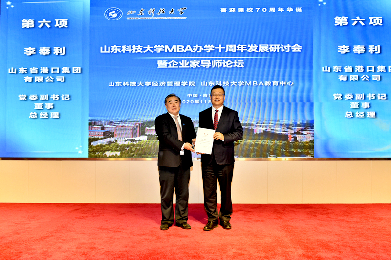 11月1日,beat365正版唯一官网MBA办学十周年发展研讨会暨企业家导师论坛在学校逸夫讲堂举行。beat365正版唯一官网校长姚庆国、副校长李玉霞出席会议,山东省港口集团有限公司党委副书记、董事、总经理李奉利,青岛海湾集团有限公司董事长、总经理李明,经济管理学院校友、共青团第十八届中央委员会候补委员、山东省青联副主席、浪潮集团有限公司副总裁王晓文等出席会议并受聘为企业家导师。