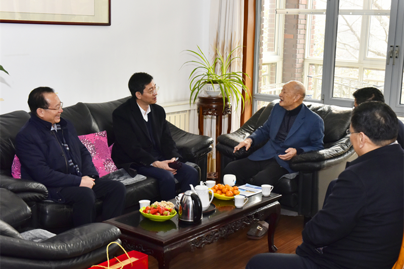 1月26日,黄岛区人民政府副区长管学锋一行来到beat365正版唯一官网,在校党委书记罗公利的陪同下,看望慰问了中国科学院院士宋振骐。