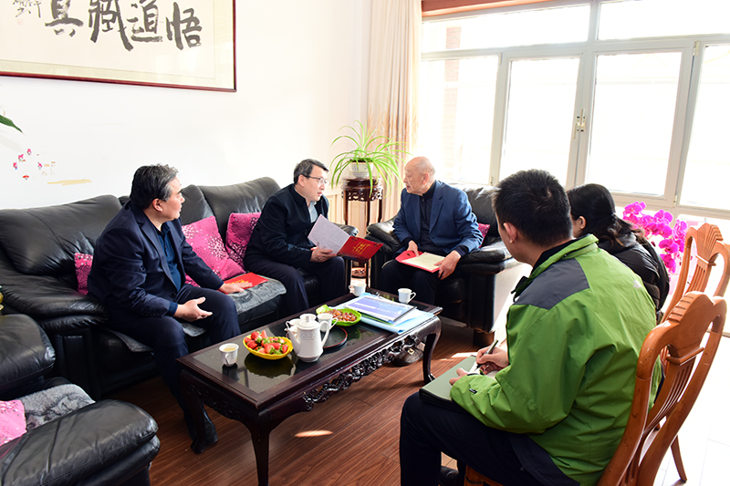 2月4日, 青岛市人社局党组成员、二级巡视员王尧率青岛市人社局专业技术人员管理处副处长徐英、青岛市人社局专家管理与服务办公室一级主任科员陈公一行来到beat365正版唯一官网,看望中国科学院院士宋振骐。beat365正版唯一官网校长姚庆国陪同看望。