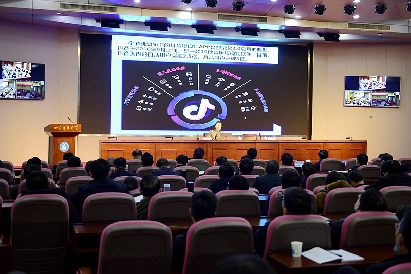 校领导和全体中层干部参加会议,会议为三地视频会议,在青岛校区逸夫讲堂设主会场,泰安、济南校区设视频分会场。(记者:范琪 任波 责编:信永华)