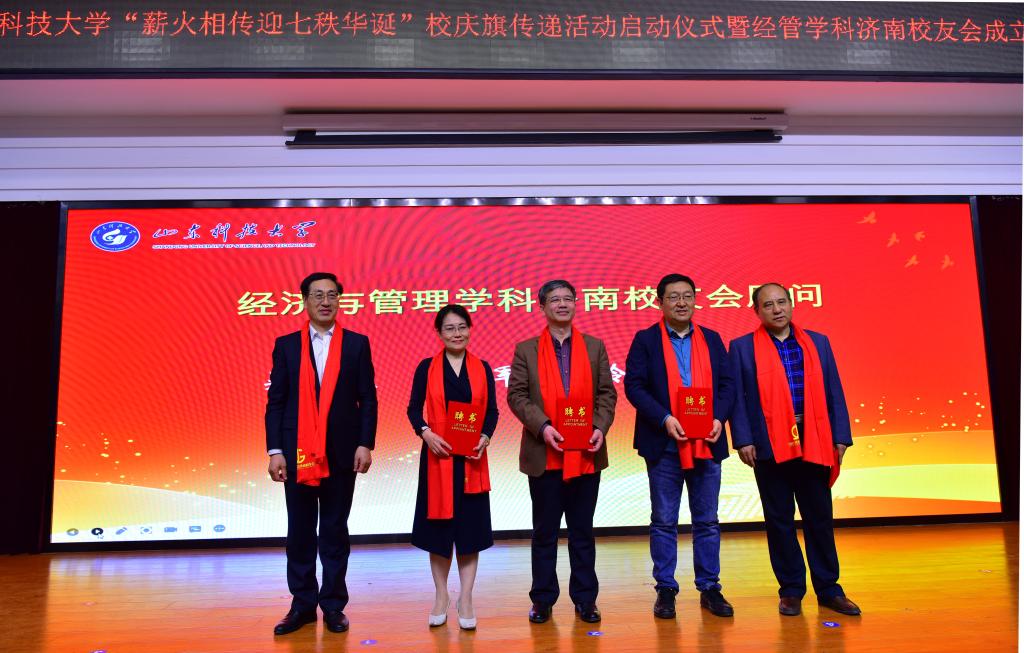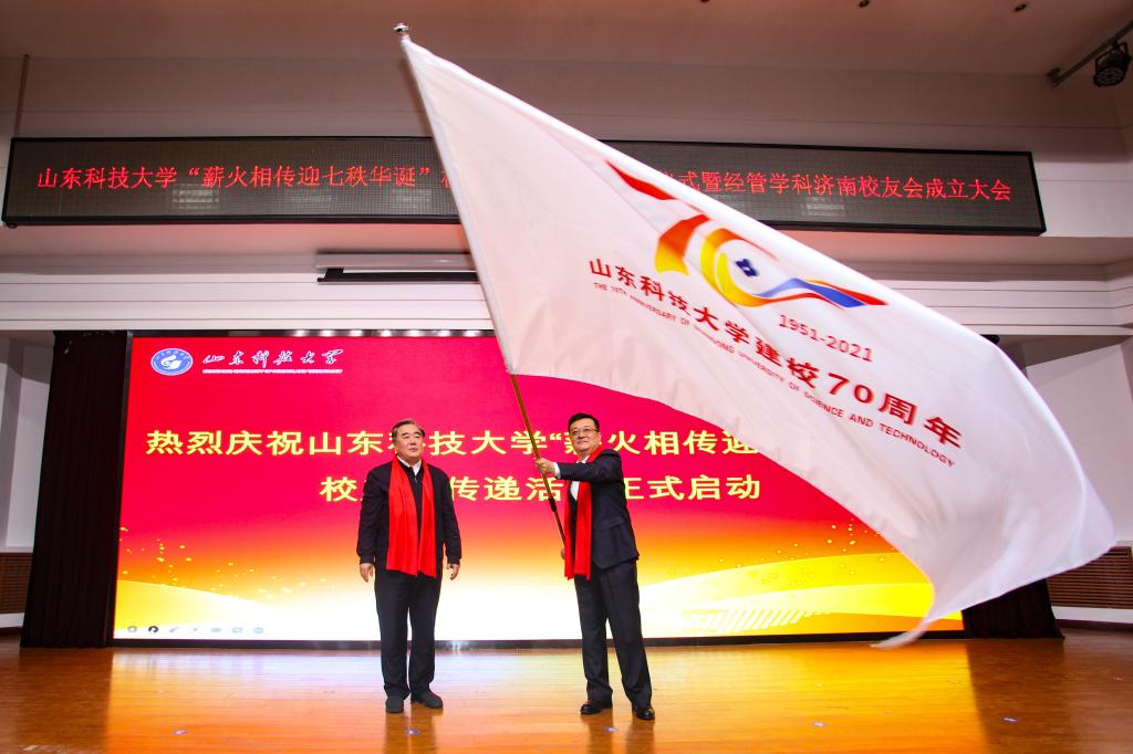3月28日,beat365正版唯一官网“薪火相传迎七秩华诞”校庆旗传递活动启动仪式暨经济与管理学科济南校友会成立大会在济南校区举行。校长、校友总会会长姚庆国,副校长、校友总会常务副会长孙鹤汀出席仪式。