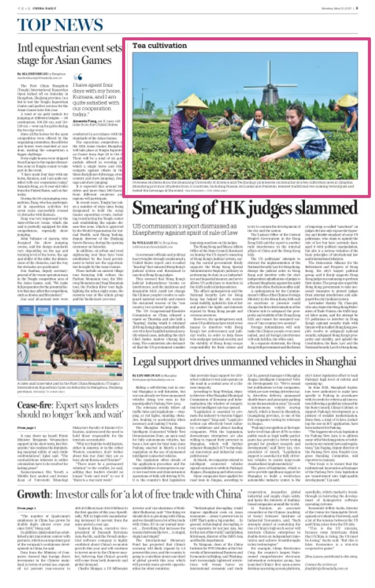 《中国日报》3版:Tea cultivation
