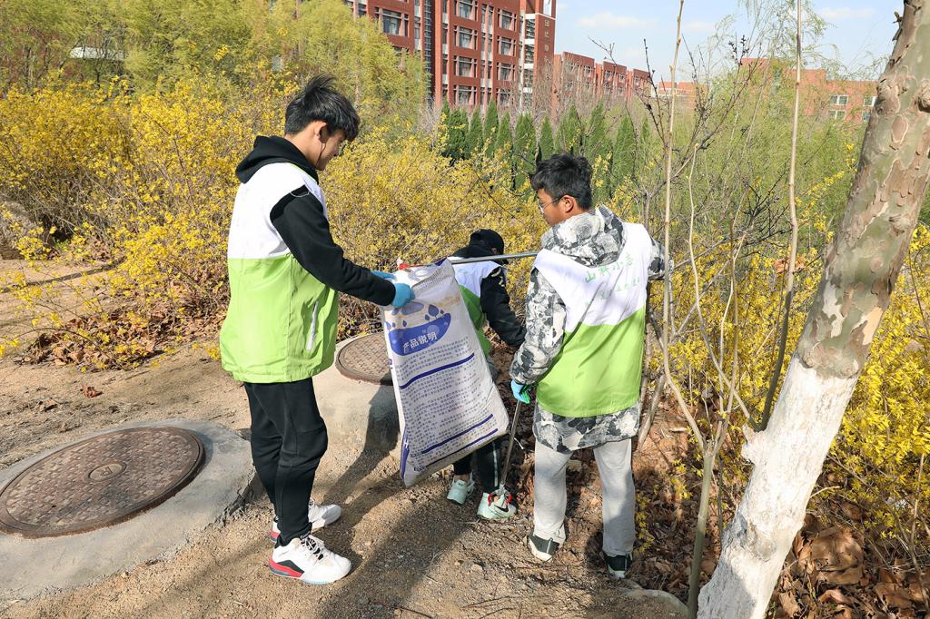 志愿者进行“志愿沿途,雷锋校园”校园清理