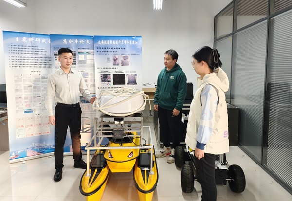 王万楠(左一)指导学生科技创新