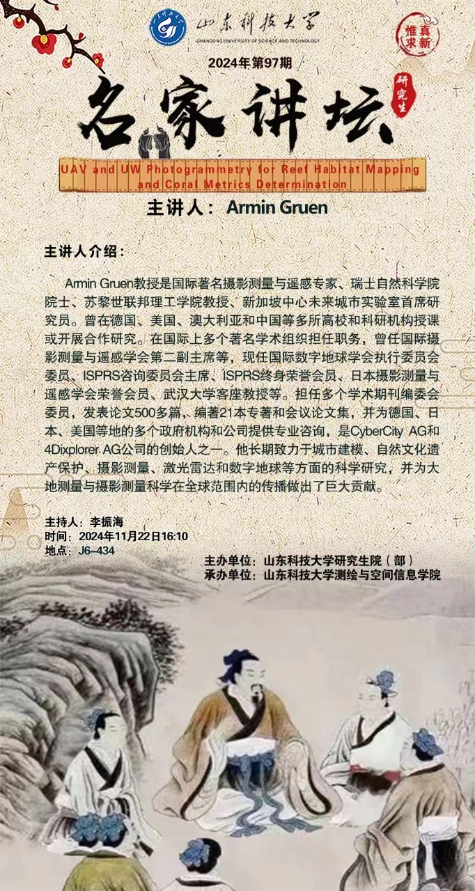 “名家讲坛”2024年第97期:UAV and UW Photogrammetry for Reef Habitat Mapping and Coral Metrics Determination(总991期)