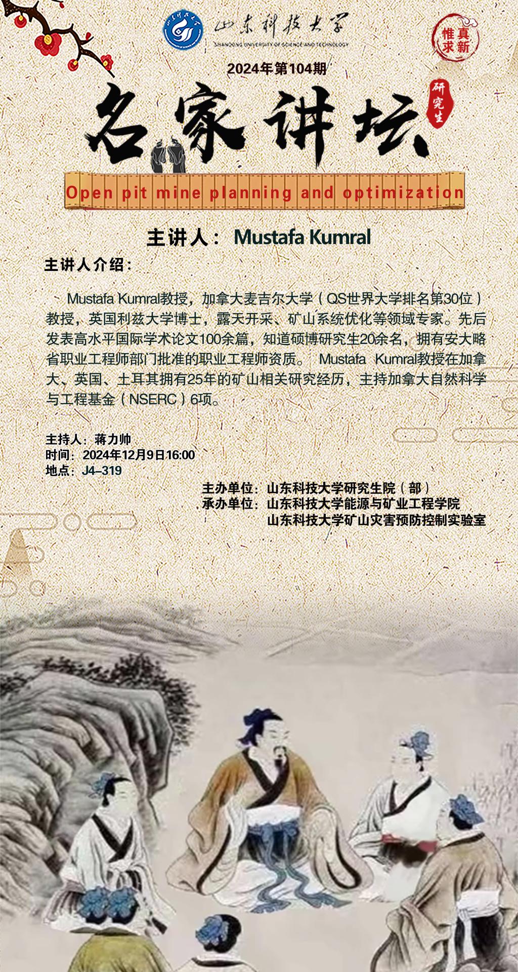 “名家讲坛”2024年第104期:Open pit mine planning and optimization(总998期)