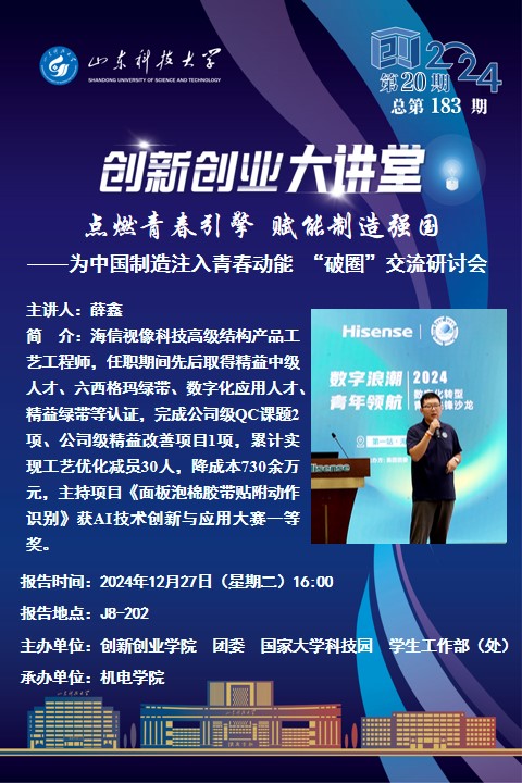 创新创业大讲堂2024年第20期:点燃青春引擎,赋能制造强国