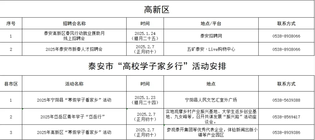 为给广大用人单位和毕业生搭建精准高效的对接平台,向毕业生提供更多优质就业岗位,现将泰安市在寒假期间的招聘引才活动通知如下。