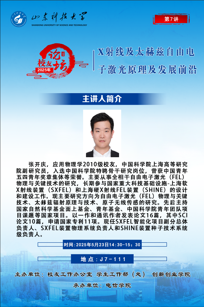 “校友论坛”2025年第7讲:X射线及太赫兹自由电子激光原理及发展前沿