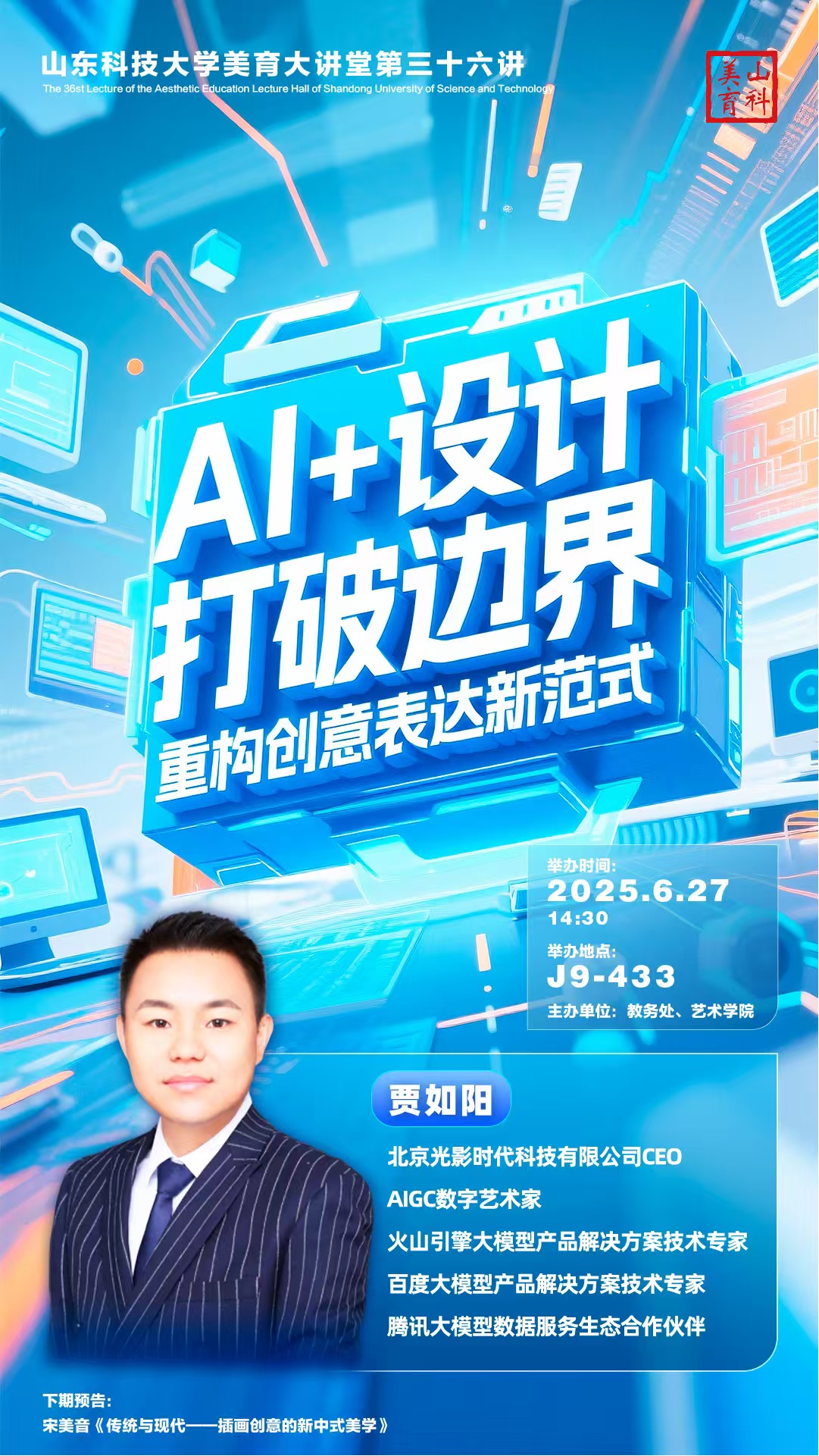 【山科美育】beat365正版唯一官网美育大讲堂第三十六讲《AI+设计打破边界 重构创意表达新范式》