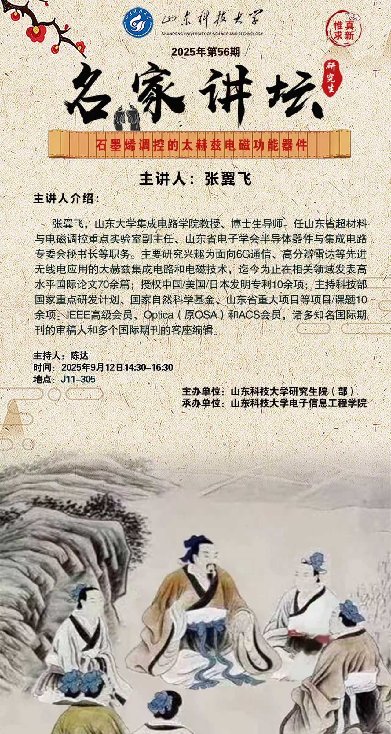 “名家讲坛”2025年第56期:石墨烯调控的太赫兹电磁功能器件(总1061期)