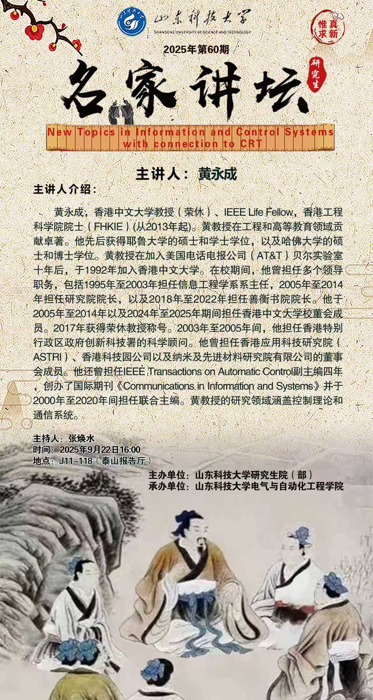 “名家讲坛”2025年第60期:New Topics in Information and Control Systems with connection to CRT(总1065期)