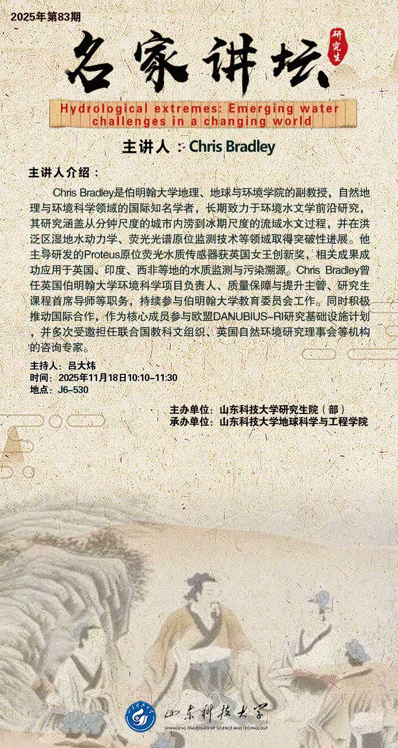“名家讲坛”2025年第83期:Hydrological extremes-Emerging water challenges in a changing world(总1088期)