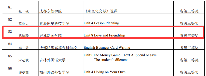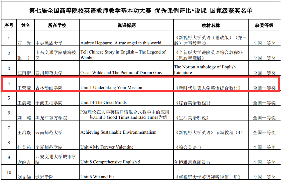 金沙官网国际交流学院英语教师王莹莹副教授以省级一等奖的成绩成功晋级国家总决赛,经过激烈角逐,最终获得该项比赛说课类别国家级一等奖(她是我省高校参加此次大赛选手中唯一获得此奖项的选手);国交学院英语教师武婧琦获得该项比赛说课类别省级三等奖;国际交流学院常务副院长陈俊、教师薛媛媛获得本次比赛的优秀指导教师一等奖。