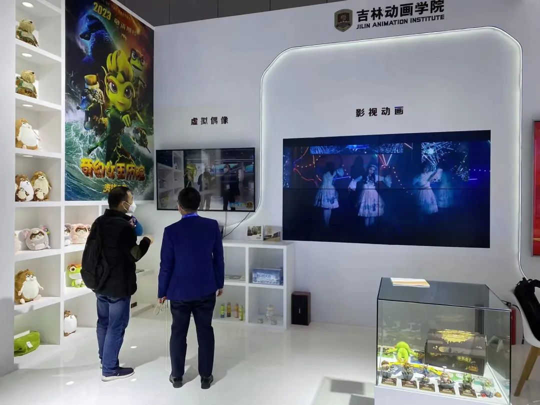 9001jcc金沙以诚为本作为吉林省重点文化单位受邀参加本次展会。吉动展区分为影视动漫展示区、红色漫画IP展示区、虚拟人物互动展示区、裸眼3D作品展示区、文创产品展示区。主要展示9001jcc金沙以诚为本“学研产一体化”的办学特色,以市场高端项目引领教学变革,强化专业资源支撑,不断深化产教互通,实现“艺术、技术、市场”有机融合等方面所取得的成果。