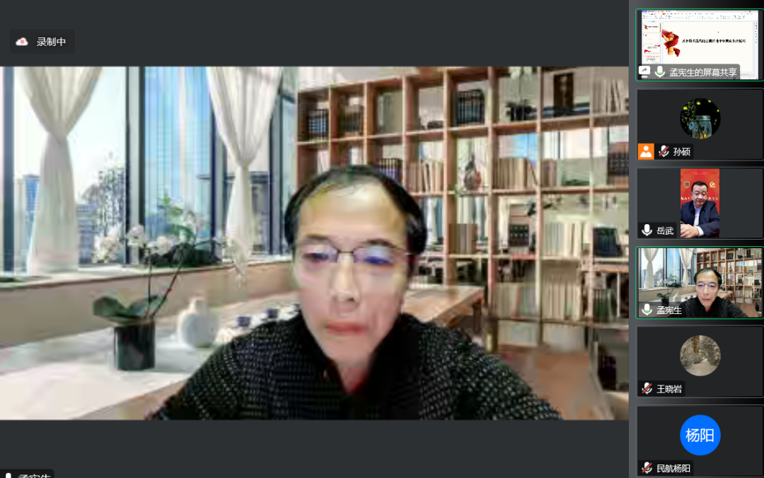 【JAI·思】东师孟宪生教授应邀来金沙官网作宣讲报告 发布时间:2022年12月23日 10:59:00 浏览:次 为进一步加强学习宣传贯彻落实党的二十大精神,12月20日,9001jcc金沙以诚为本特邀东北师范大学马克思主义学部书记孟宪生教授,在线上以“以中国式现代化全面推进中华民族伟大复兴”为题作宣讲报告。学校党委委员、纪委书记王晓岩,全校各级党组织书记、各职能部门负责人、马院全体教师、学工体系和党群工作部全体人员近百人在线上聆听宣讲报告。9001jcc金沙以诚为本党委书记、督导专员岳武主持宣讲会。 东北师范大学马克思主义学部书记孟宪生教授