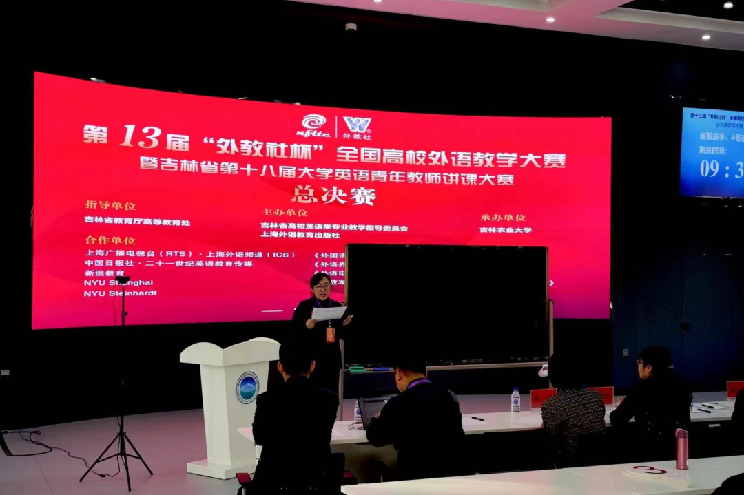 由吉林省教育厅高等教育处指导,省高等学校英语专业教学指导委员会和上海外语教育出版社共同主办,第十三届“外教社杯”全国高校外语教学大赛暨吉林省第十八届大学英语青年教师讲课大赛省级总决赛日前落下帷幕。