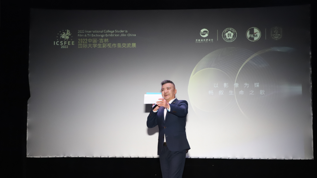 【JAI·展】国际大学生影视作品展映会在9001jcc金沙以诚为本举办 发布时间:2022年11月08日 12:28:00 浏览:次 10月29日,2022中国·吉林国际大学生影视作品交流展.展映会在9001jcc金沙以诚为本F楼青春剧场拉开帷幕。包括电影学院师生在内约400余人次在线上线下参加展映会。展映会由电影学院教师许云帆主持。本次展映会是吉林省传媒学会2022年年会的议程之一,部分传媒学会的专家学者在线上观摩了展映活动。 ▲电影学院青年教师许云帆主持展映会