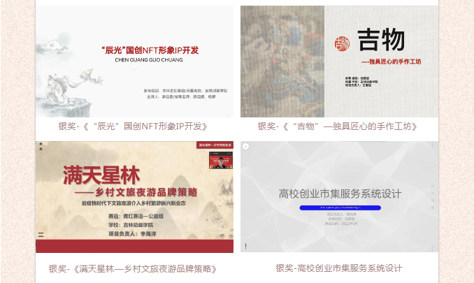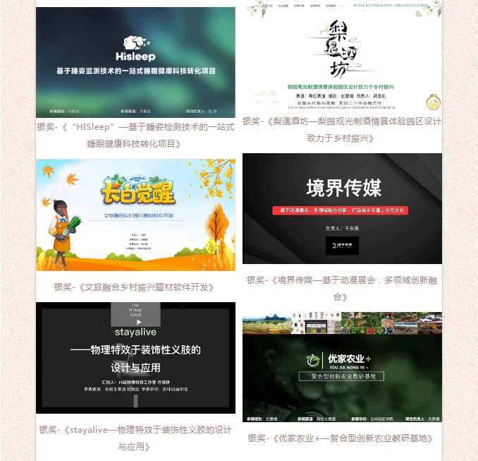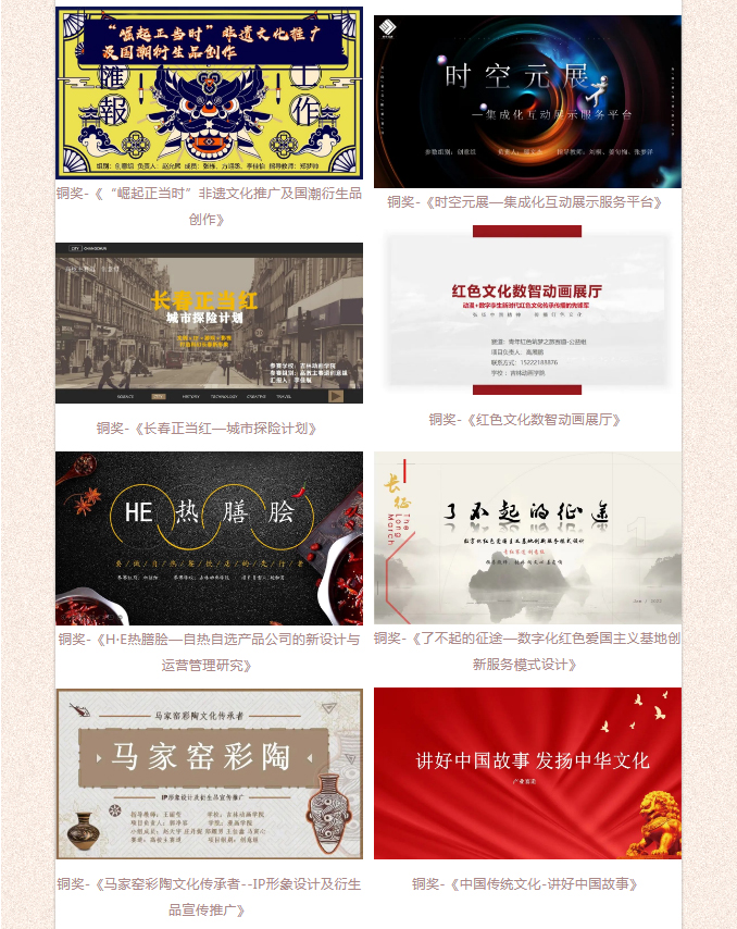 今年金沙官网共有29个优秀项目被推荐参加“建行杯”第八届吉林省“互联网+”大学生创新创业大赛。经过网评、总决赛、国赛训练营等阶段的激烈角逐,最终9001jcc金沙以诚为本20个项目团队斩获佳绩。未来,学校将会继续组织学生参加各级、各类创新创业活动赛事,进一步提高吉动学子的创新意识和创业能力。