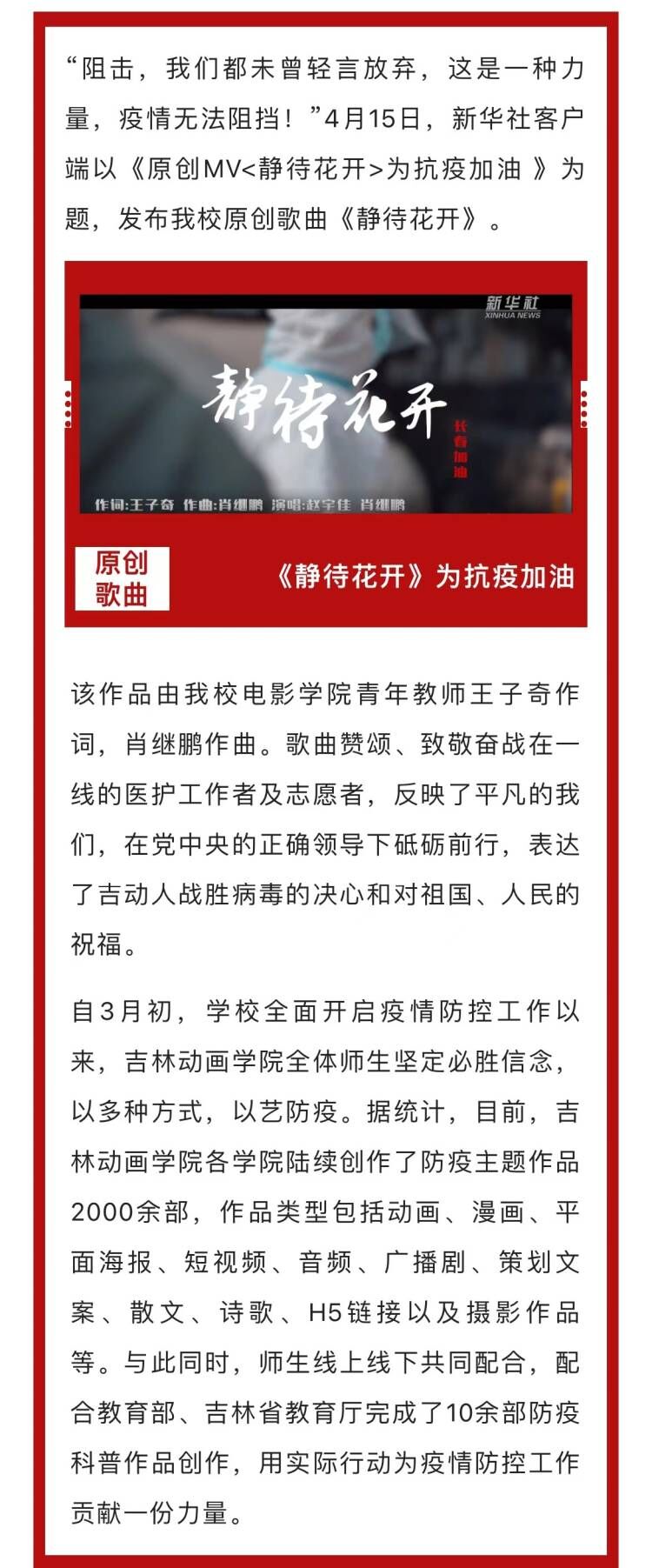 【JAI·防“疫”】新华社推播金沙官网原创歌曲《静待花开》