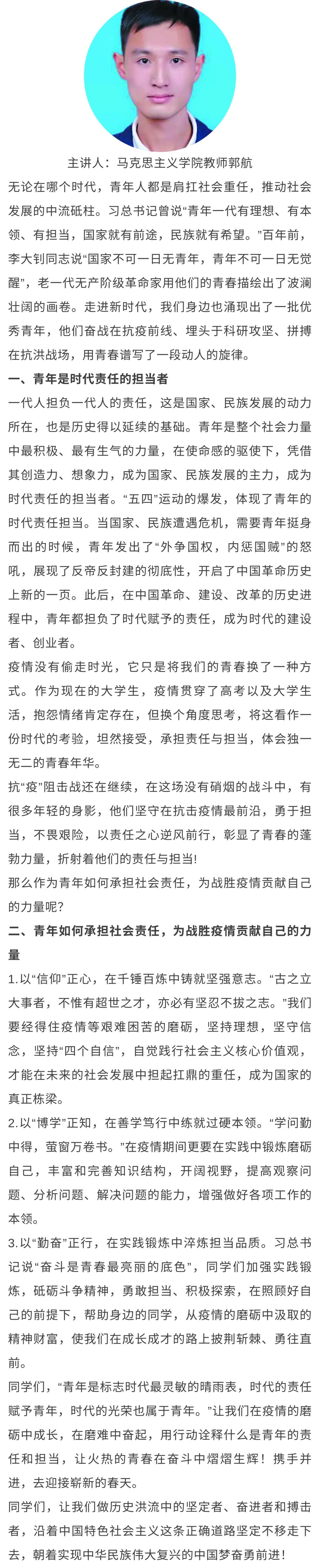 【JAI·防“疫”】9001jcc金沙以诚为本马克思主义学院战“疫”思政微课第五讲——责任与担当