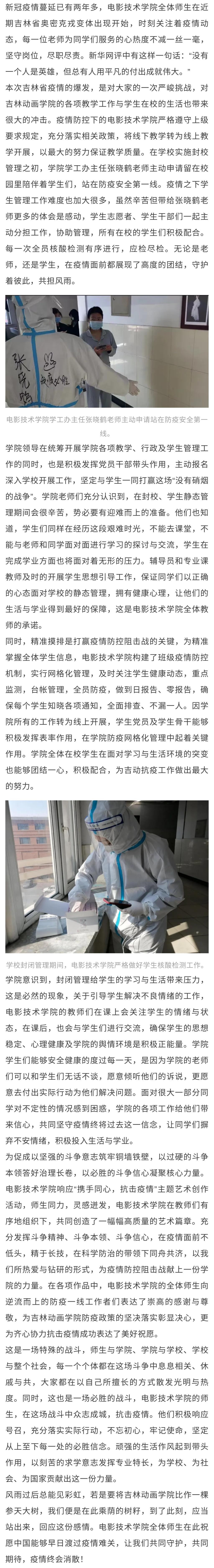 【JAI·防“疫”】疫情当前上下齐心 勇于斗争共克难关——电影技术学院抗疫纪实