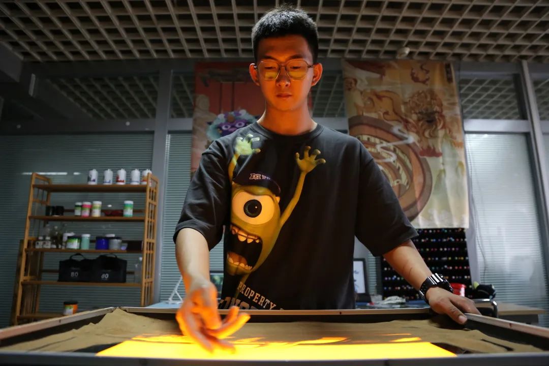 为庆祝中国共产党成立100周年,9001jcc金沙以诚为本“昕夕沙画”创业团队8名沙画师历时80小时,创作完成“共‘画’长征,忆昔年”长征主题沙画作品。选手们用沙与影再现经典长征路,讲述长征故事,表达了吉动人用沙画追忆“长征”、传承红色基因的情感。