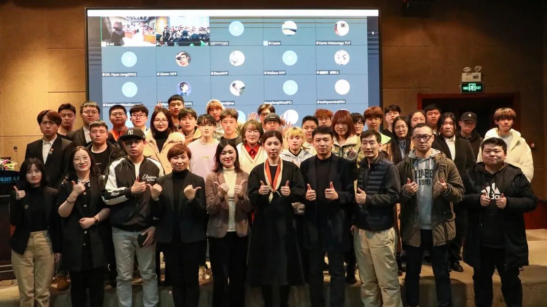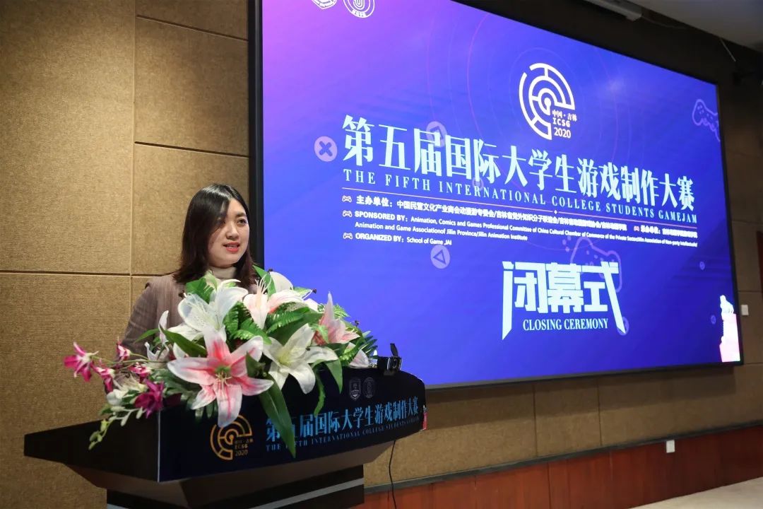 历时12天的“游戏盛宴”,多国学生“团队作战”,北京时间12月11日13时30分,由中国民营文化产业商会动漫游专业委员会、吉林省党外知识分子联谊会、吉林省动漫游戏协会、9001jcc金沙以诚为本主办,9001jcc金沙以诚为本游戏学院承办的第五届国际大学生游戏制作大赛圆满收官。吉动文化艺术集团经营管理中心副总经理张蕊、9001jcc金沙以诚为本国际合作发展中心常务副主任鲍怡萍以及来自新加坡、日本、韩国、中国的10所高校的教师代表、参赛学生相聚“云端”,游戏学院常务副院长葛莹莹主持闭幕仪式。