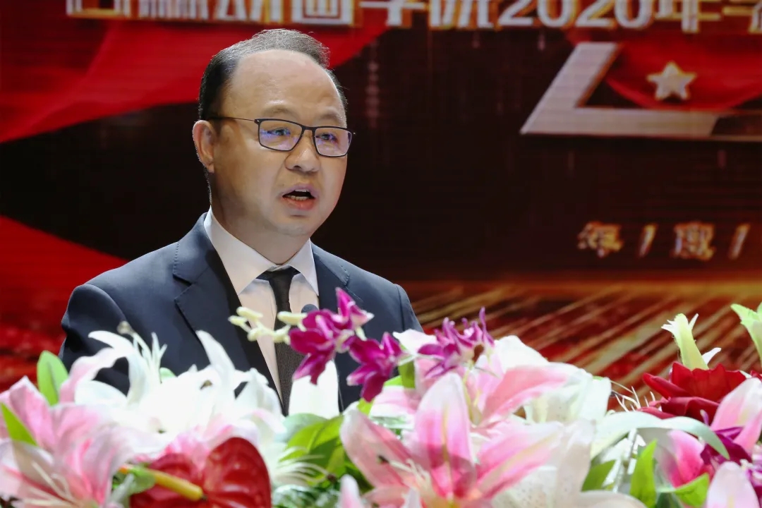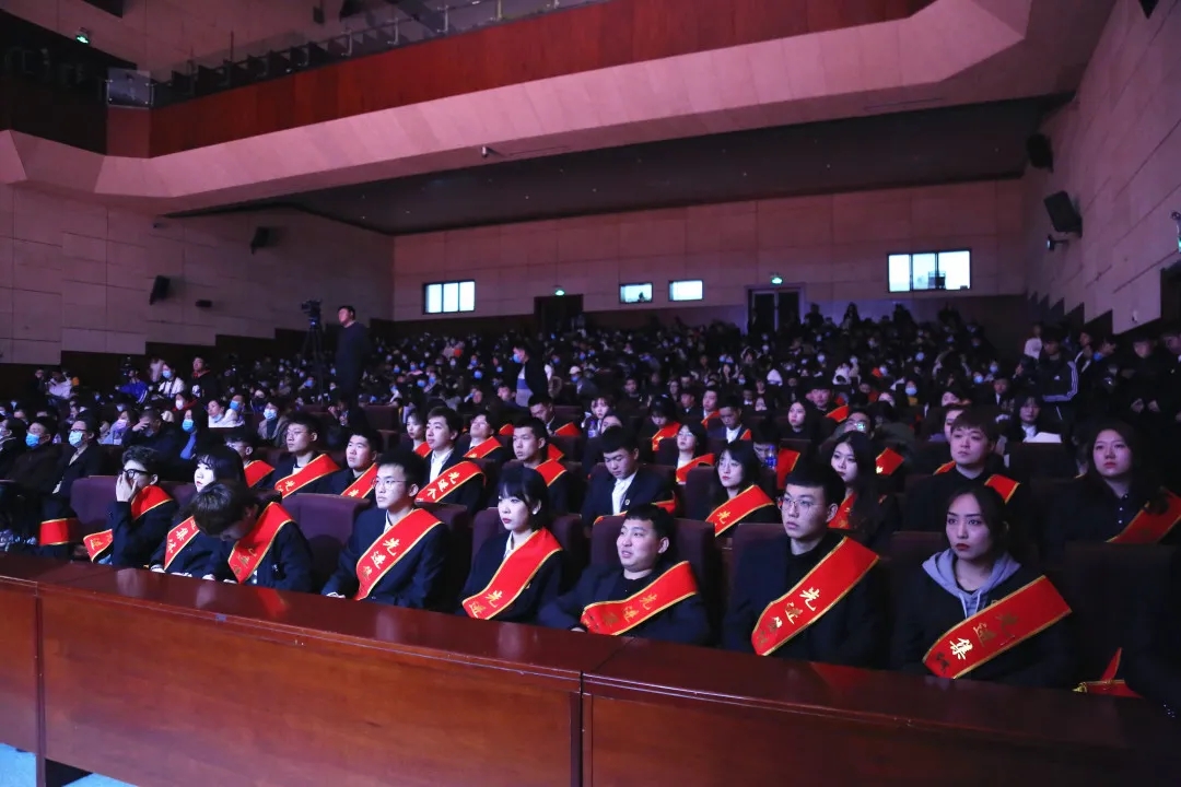▲9001jcc金沙以诚为本董事长、校长郑立国在2020年学生先进集体、先进个人表彰大会作题为“正青春的能量、正能量的青春” 的讲话