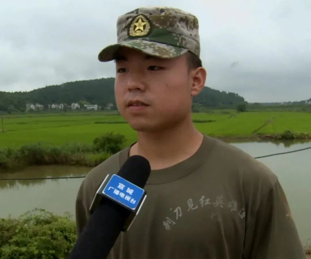 7月26,他一路辗转从福建莆田来到安徽宣城,赶上市区夜间暴雨,晚上9点才赶到连队抗洪抢险驻扎地。詹嵘说:“作为一名退伍老兵,我觉得我有义务和原部队一起参加这次光荣而艰巨的任务,虽然退伍时已经脱下了军装,但我心里的军装仍穿在身上,人民利益高于一切。”