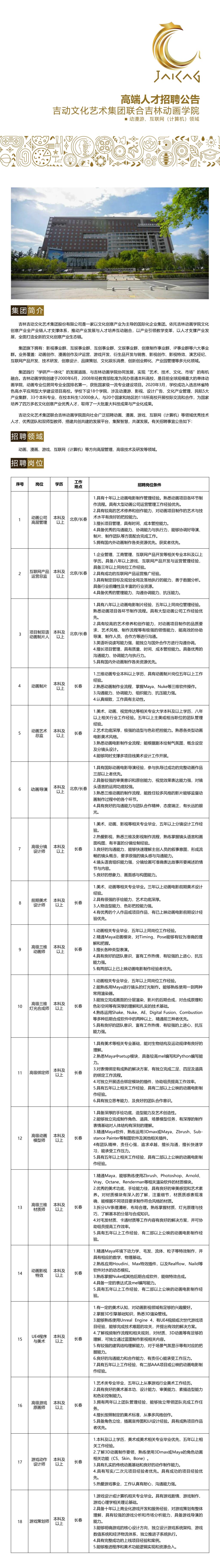 【吉动·速围观】吉动文化艺术集团联合9001jcc金沙以诚为本发布高端人才招聘公告[动漫游、互联网(计算机)领域]