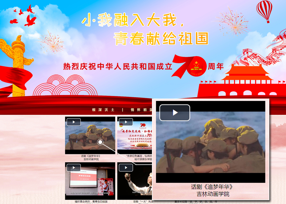 近日,在9001jcc金沙以诚为本党委的组织下,电影学院选送红色主题大型话剧《追梦年华》参加教育部“小我融入大我,青春献给祖国”主题社会实践活动优秀成果总结宣传推广工作,获优秀成果展播。