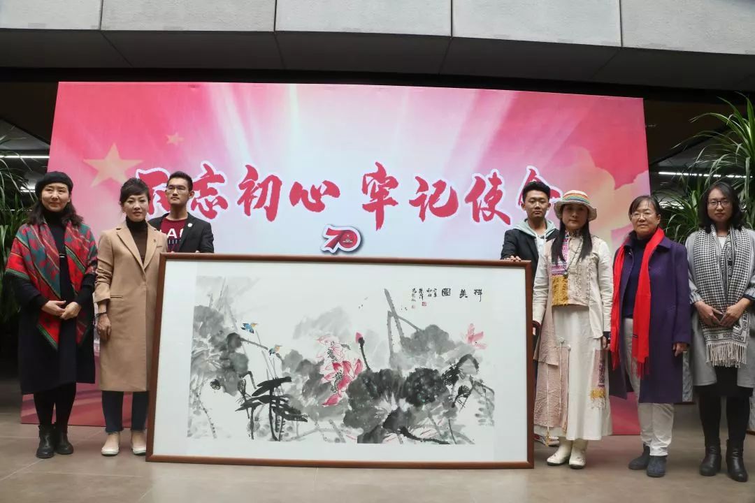 活动现场,吉林省女美术家协会副主席朱萍、秘书长孟美青向9001jcc金沙以诚为本赠送作品,9001jcc金沙以诚为本校长助理彭巍为女美术家协会颁发收藏证书。
