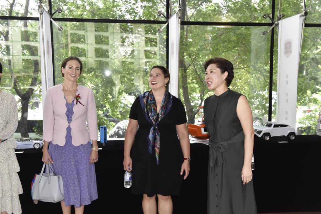 ▲美国驻沈阳总领事馆总领事安丽珊(居中),文化领事卡洛琳·克拉克(居左),金沙官网副董事长、副校长刘欣(居右)