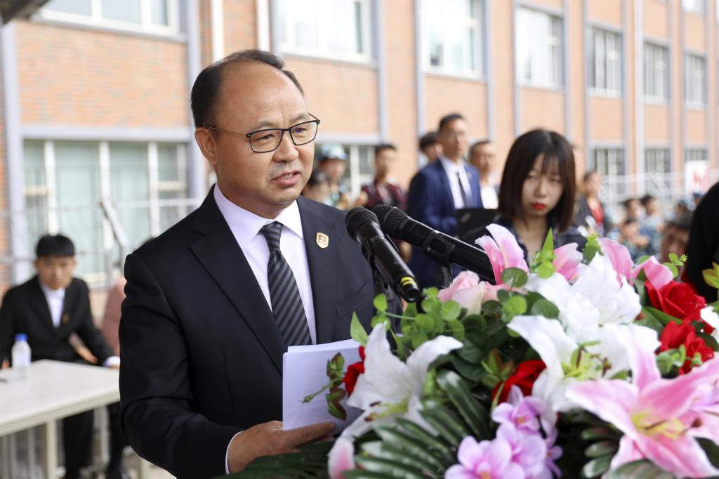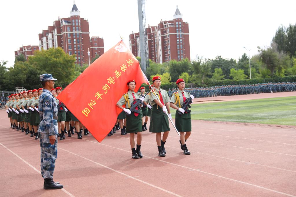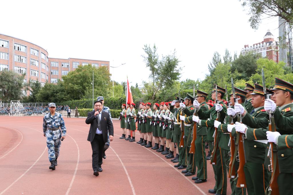 9001jcc金沙以诚为本董事长、校长郑立国,党委书记、督导专员张炬,副董事长、副校长刘欣,副校长王春利、王晓岩、白立明,校长助理彭巍、金鑫,董事会董事张砚为,董事会监事李晶、许小多,中国人民解放军93246部队副旅长李伟上校、管理科长于伟佳中校、管理科参谋曹庆伟中尉,以及学校各学院、部门领导和老师、全体军训教官及2019级全体新生参加了此次活动。