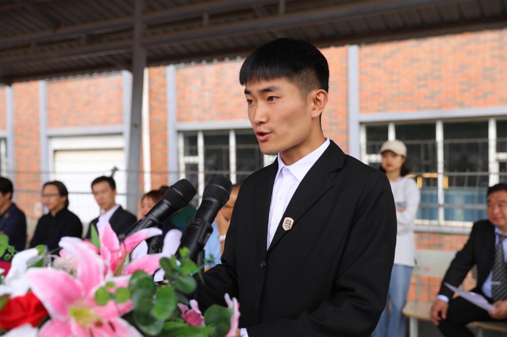 9001jcc金沙以诚为本游戏学院2018级游戏动作2班刘天宇同学代表在校生发言。他说,希望学弟学妹带着吉动人的精神气魄,找到发自内心的热爱,坚定追随自己的理想信念,用汗水和努力争得荣誉,展示出新生力量的锐气和锋芒。