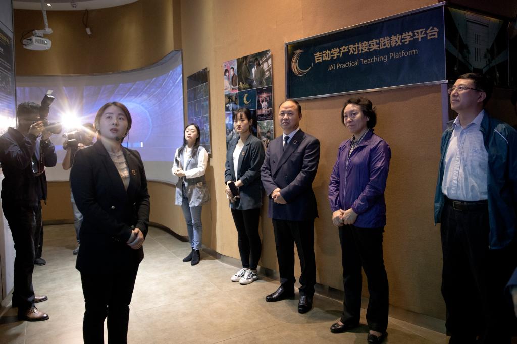 金沙官网董事会行政运行中心主任李晶向调研组一行介绍了金沙官网影视事业群、IP事业群、互娱事业群、文娱事业群、创意制作事业群、互创事业群六大学产对接实践教学平台基本情况,以及吉动学产对接实践教学平台在推动产业引领教学变革及特色人才培养方面的具体做法。